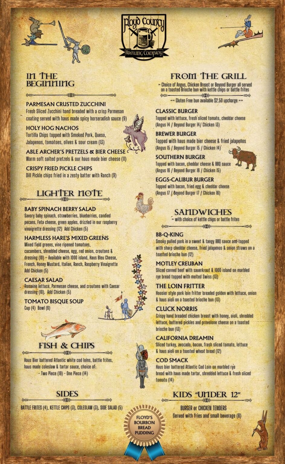 It’s a lot of work to make award winning Craft Beer while also operating a full service restaurant and brewpub.  We offer an extensive menu of high quality pub grub favorites that are prepared in our professional kitchen and not a food truck.  We carefully choose menu items that pair well with the many craft beer styles that we produce.